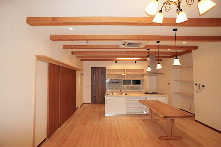 KDKのような大きな居室の中には、複数の天井高を設定します。さらに開口部(窓)の寸法、高さも吟味されます。そうして、心地のいい、落ち着いた、プロポーションの美しい住まいをつくっていきたいと考えています。