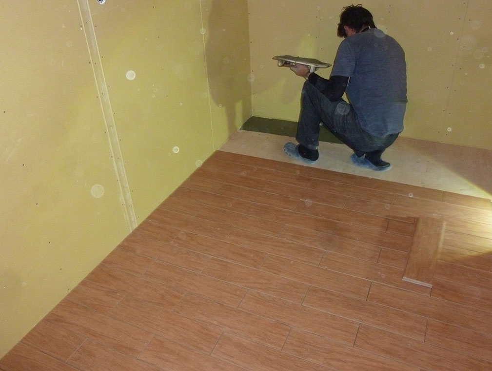 ここで、自然素材である無垢の木の建物の床に、自然素材である固い陶器タイルで仕上げるには、屋外のタイル貼りとは違う施工方法が必要となります。
